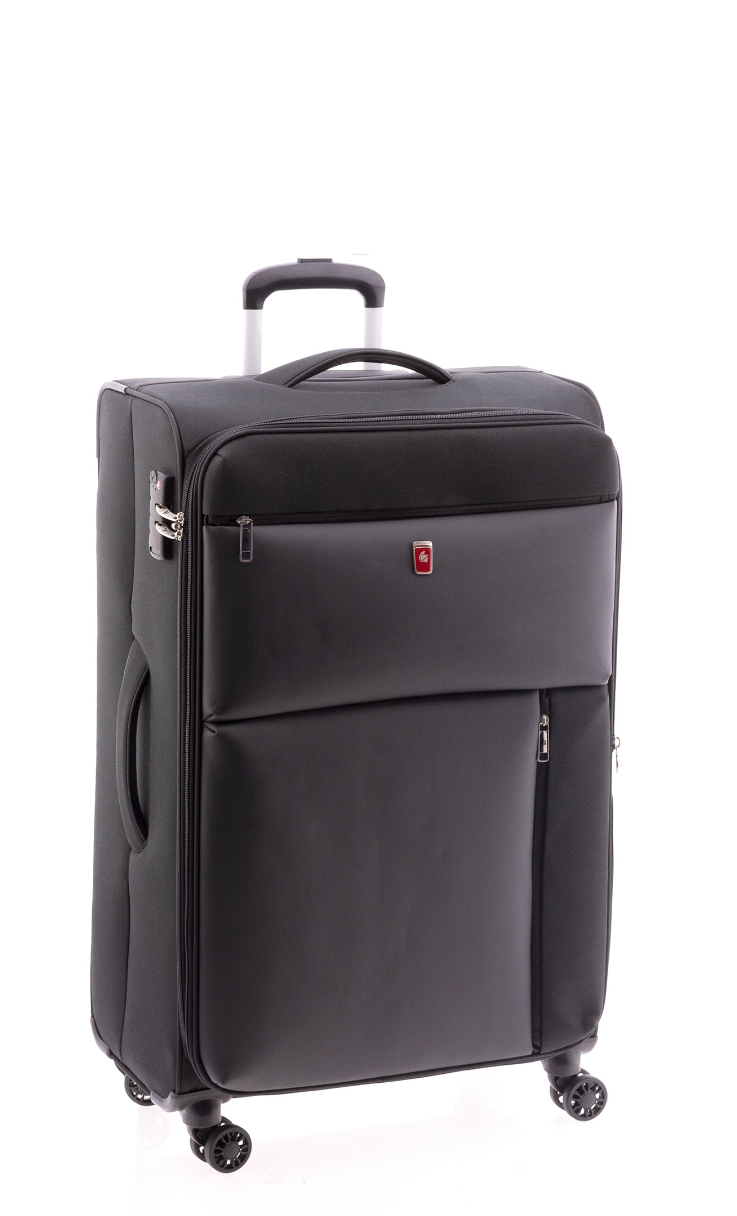 Características clave: Cuatro ruedas dobles, candado TSA de combinación, y capacidad extensible (80-120L). Dispone de asas superior y lateral, mecanismo con botón, y bolsillos frontales.
